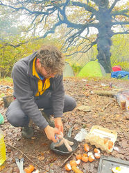 Ric's potatoes were incredible, and his axe so sharp. Chris's tent was so big we called it a palace and Isaac got 10 hours sleep.